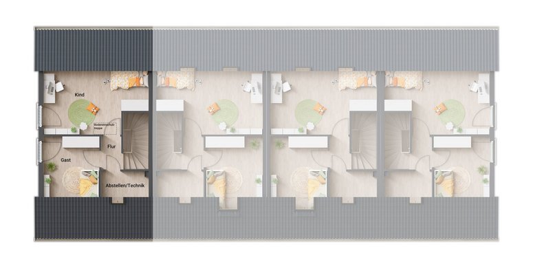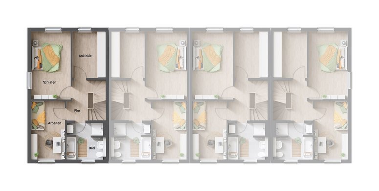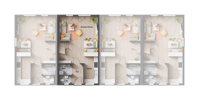Mit vier Einheiten in einem Gebäude schafft dieses Reihenhaus die perfekte Balance aus individueller Wohnfreiheit und lebendiger Nachbarschaft – ein Zuhause, das moderne Ansprüche an Komfort, Design und Nachhaltigkeit erfüllt.