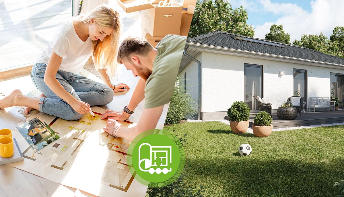 Bevor Sie mit der Hausplanung starten, fragen Sie sich, was Sie wirklich von Ihrem neuen Traumhaus erwarten und was Sie zum Leben brauchen. Muss die Küche eine Essecke beinhalten, wenn der Essbereich im Wohnzimmer nebenan liegt und durch einen offenen Durchgang erreichbar ist? Eine kleine Wohnfläche bedeutet auch, Abstriche zu machen. Für ein eigenes Arbeitszimmer, eine Speisekammer oder das Gamingzimmer für Mann oder Nachwuchs ist dann kein Platz mehr. Dass man dennoch auf Nichts verzichten muss und sich sogar alles auf einer Ebene befinden kann, zeigt der Bungalow 78.